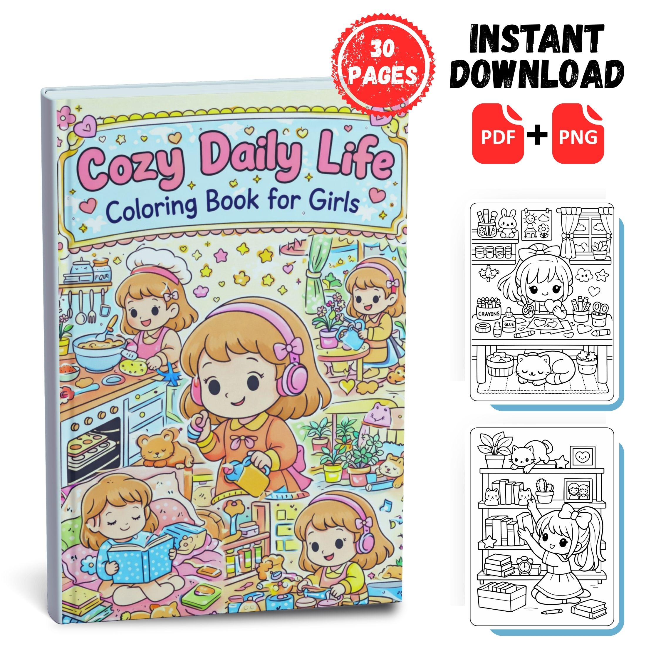 Cozy Daily Life Coloring Book for Girls | Cute & Kawaii 30 Pages | Instant PDF + PNG