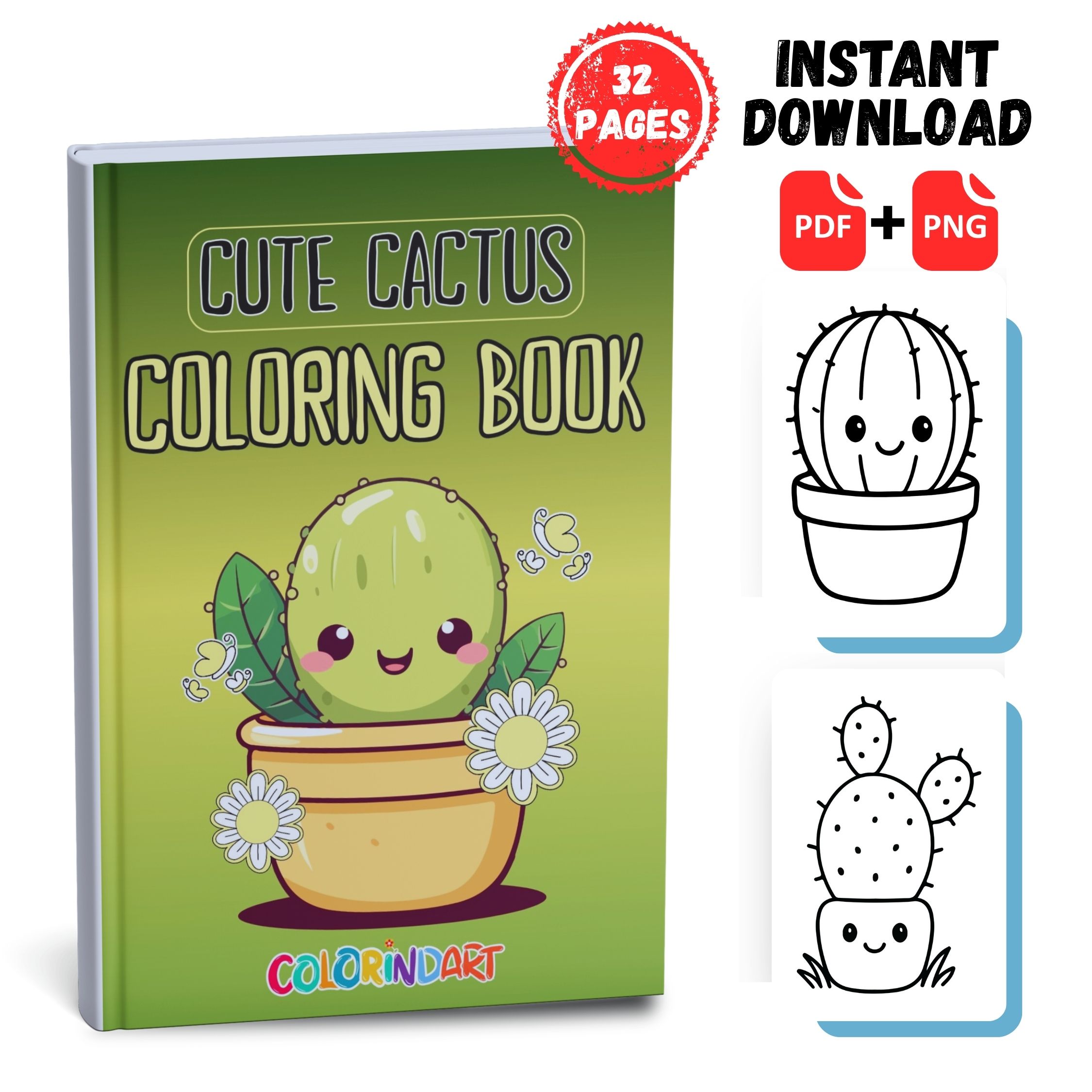 Cute Cactus Coloring Book | 32 Fun Pages for Kids & Adults | Plant Lovers | Instant PDF + PNG