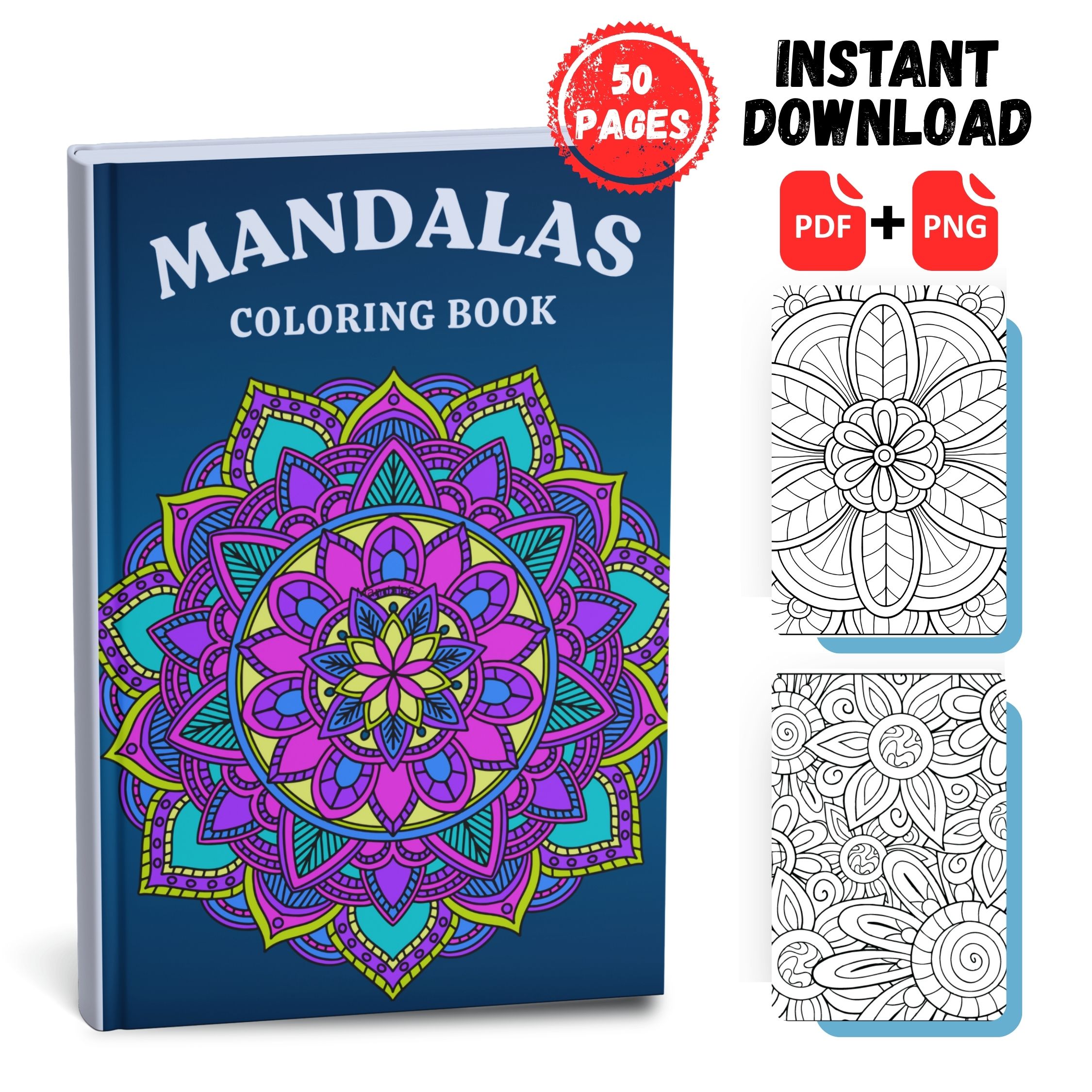 Mandala Coloring Book for Adults & Kids | 50 Relaxing Pages | Instant Download PDF + PNG