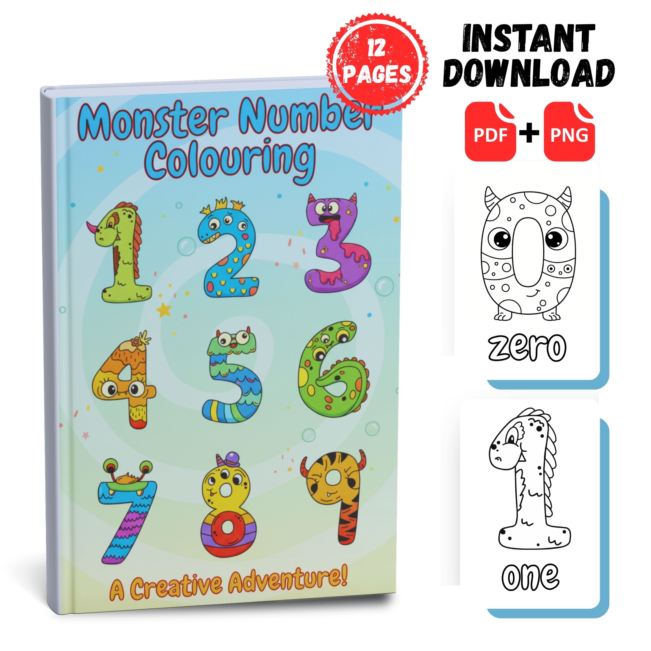 Numbers Monster Coloring Book for Kids | 12 Pages with Cute Monsters | PDF + PNG